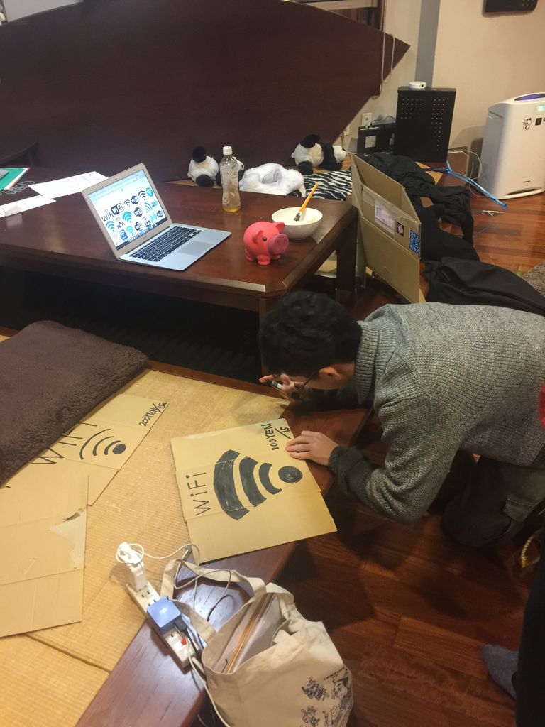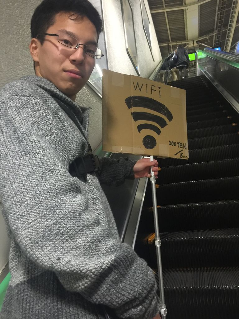 放っておこうと思ったけど、そこまでがんばってやるならなんか一緒に考えるか。っていってブレストして考えたのが「wifi人間」ポケットwifiの電波をwifiがなくて困っている海外の人に販売した #アホに1万円